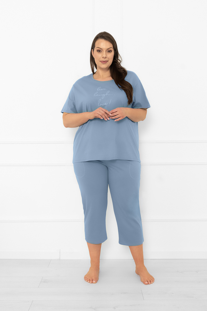 Női pizsama Ksara - rövid ujjú, 3/4-es nadrág, pamut Italian Fashion - steel