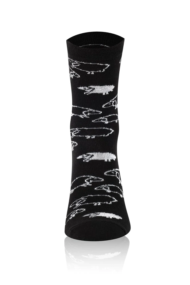 Hosszú zokni Wito S182D - fekete birka motívummal Olasz divat