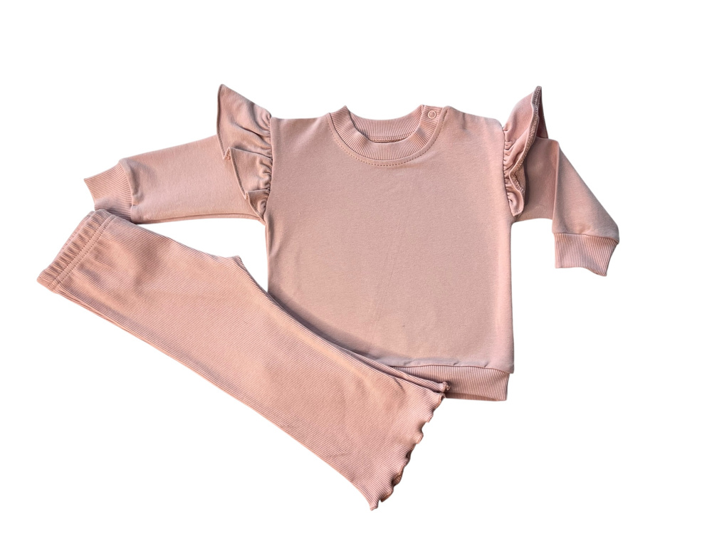 Az egész ruhadarab puha, légáteresztő pamutból készült, ami garantálja a viselési kényelmet és a baba érzékeny bőrének biztonságát. A leggings rugalmas derékpántja kényelmes és stabil illeszkedést biztosít, míg a gondos kidolgozás biztosítja, hogy a szett sok mosás után is megőrizze megjelenését.