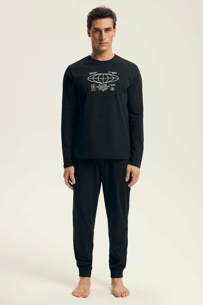 Henderson Core 43469 Loger férfi pizsama fekete - pamut, hosszú ujjú, elegáns csomagolásban