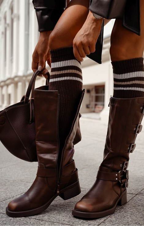1610-001 Női térdzokni Milena barna csíkos, csíkos, kényelmes és stílusos