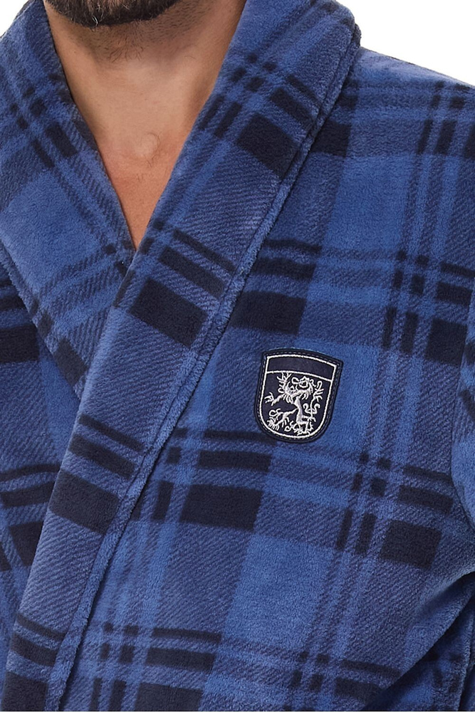 2456 BJ Férfi fürdőköpeny L&L navy- puha, kockás gallérral