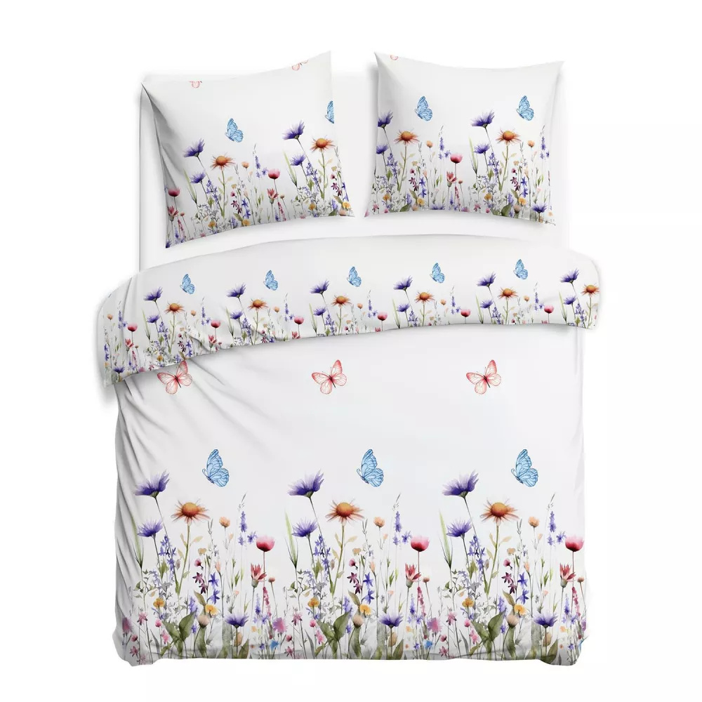 31512/1 Flanel ágynemű Flanelove Darymex fehér színes virágos szett, 100% pamut, meleg és puha