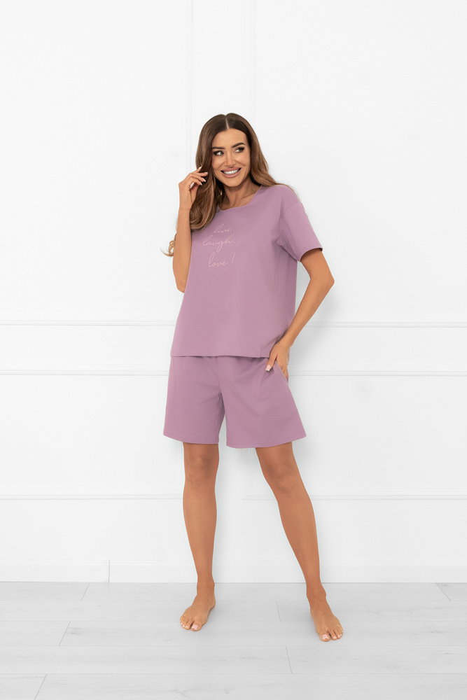 Női pizsama Ksara Italian Fashion - pamut, rövid ujjú és rövidnadrág - heather