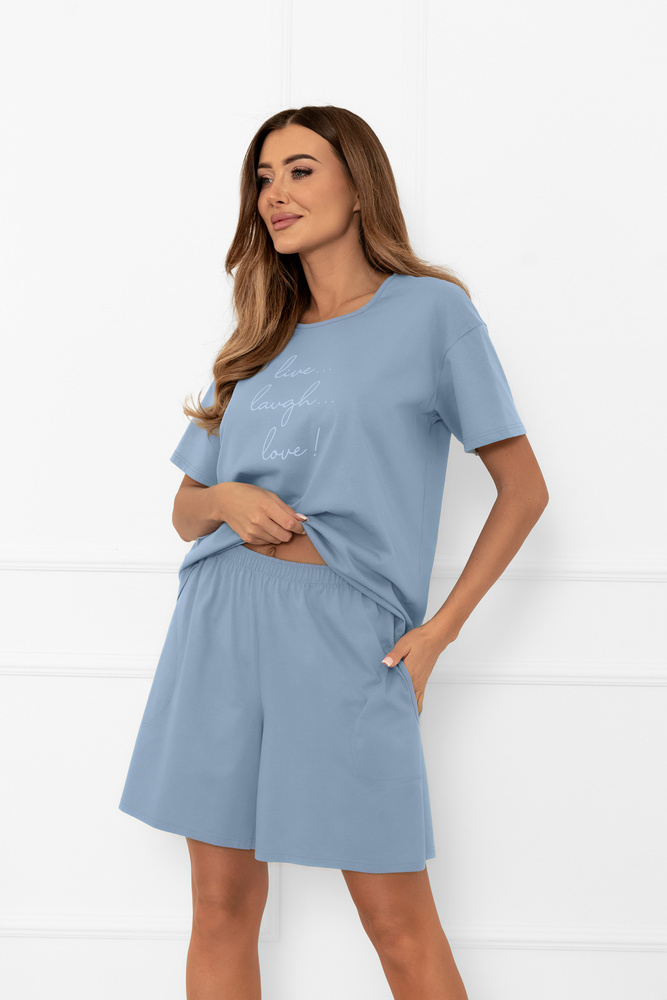 Női pizsama Ksara Italian Fashion - pamut, rövid ujjú és rövidnadrág - acél