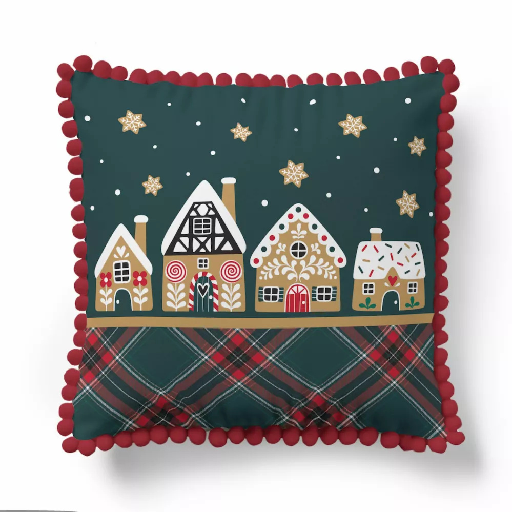 5379 A karácsonyi dekoratív párnahuzat Karácsonyi dekoráció Detexpol mézeskalács ház és csillagok - zipzár