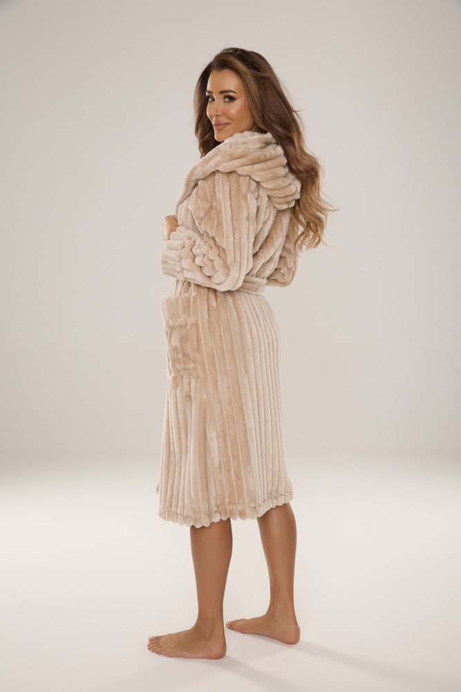 A Sutton 887 De Lafense női köntös tökéletes választás azoknak a nőknek, akik értékelik a kényelmet és az eleganciát egy otthonos környezetben. Puha és tapintható puha anyagból készült, úgy burkolja a testet, mint egy bolyhos takaró. Praktikus kapucnival és derékszíjjal ellátott, garantálja a kényelmet és a tökéletes illeszkedést az alakhoz. A térd alatti hossz biztosítja, hogy a köntös teljes hőkomfortot nyújtson, miközben nagyon nőiesnek tűnik.