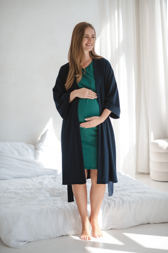 A modell kitűnik gyönyörű mély színével, amely energiát ad és hangsúlyozza a női jelleget. A megfelelő hosszúság biztosítja a kényelmet és a mozgásszabadságot a kismama minden szakaszában, míg a 7/8 ujjak rendkívül kényelmessé teszik a fürdőköpenyt a mindennapi tevékenységekhez - különösen az újszülött gondozásakor.