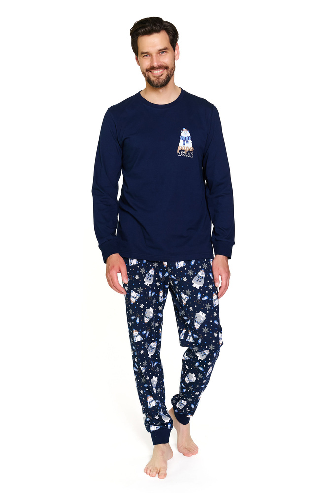 • Férfi Doctor Nap 7338 Cozy Bear pizsamák. Hosszú ujjú, nyomtatott póló, téli mintás nadrág. 100% pamut.