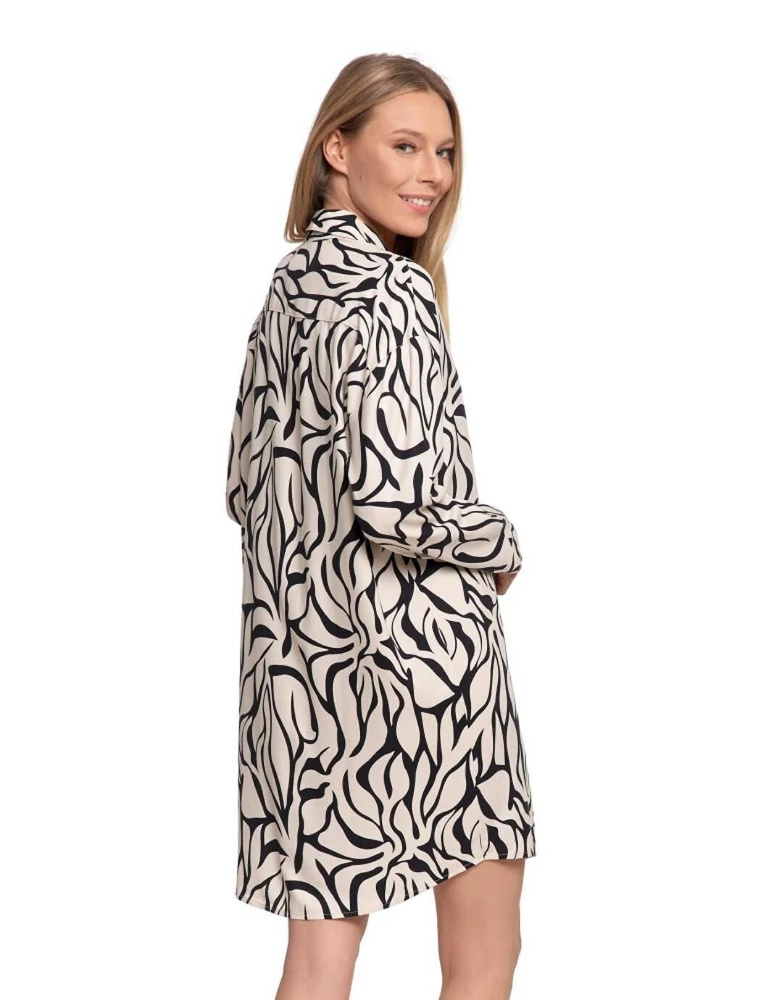A modell hosszú ujjú és gombos rögzítés, ami elegáns, időtlen jelleget kölcsönöz neki, és könnyen viselhetővé teszi. Az ing gondosan kidolgozott, hogy alvás közben teljes kényelmet biztosítson. Vágásának köszönhetően klasszikus hálóingként és stílusos otthoni ruhaként is működik az esti pihenéshez.