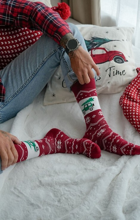 Férfi karácsonyi zokni Milena egy szórakoztató és stílusos kiegészítője a téli ruhatárnak. Kiváló minőségű pamutból készült egy kis elasztánnal, puha, rugalmas és kellemes viselet.