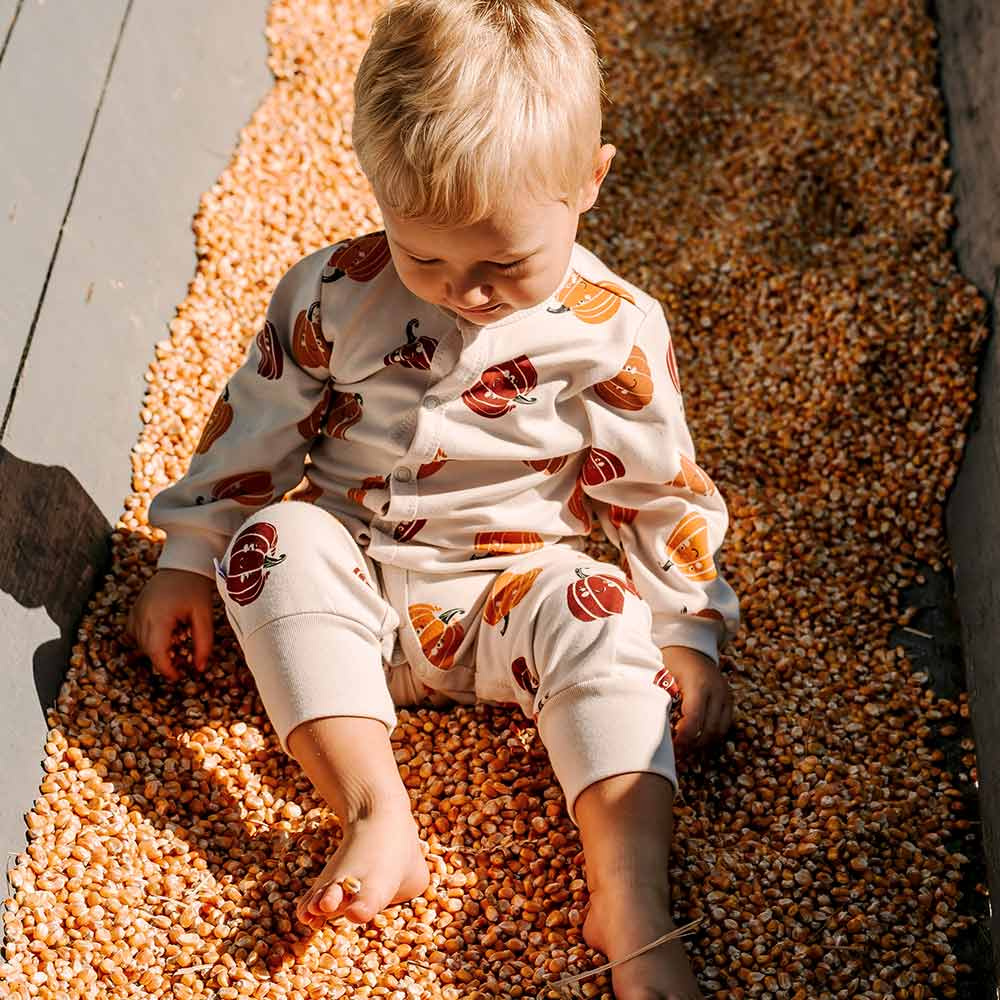 Gyermek pizsama Eevi a Halloween kollekcióból a kényelmet és a bájt ötvözi az őszi hangulatban. 100% lélegző, puha pamutból készült, gyengéd és biztonságos a baba bőréhez.
