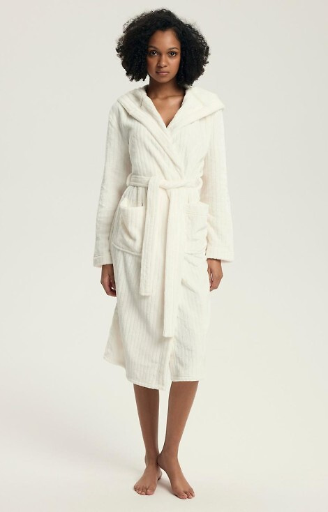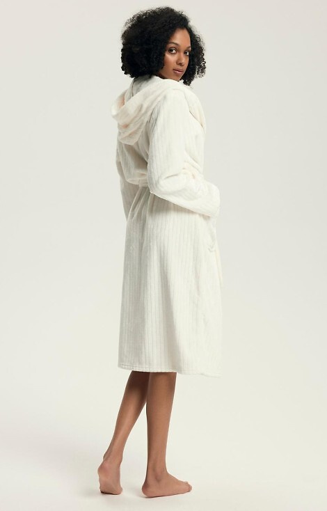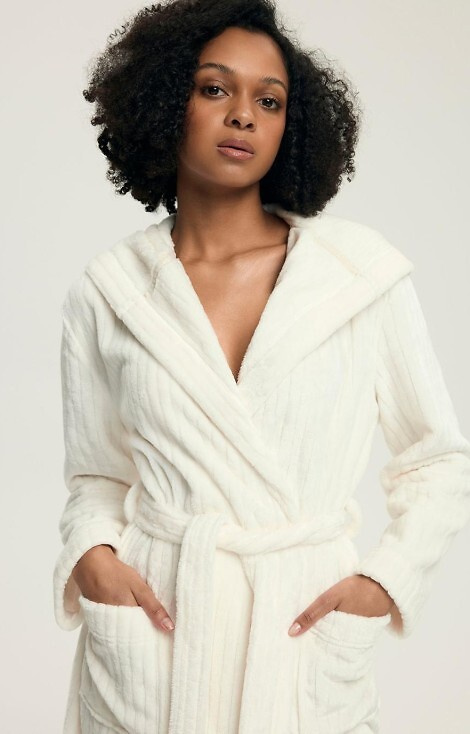 • Elegáns női köntös Dionne Henderson 43600. Puha bordás kötés, kapucni, térdhosszúság és praktikus zsebek - ideális a mindennapokra és a hűvösebb estékre.