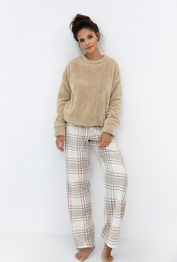 Joyce Sensis női pizsama - meleg pizsama puha felsővel és kockás nadrággal