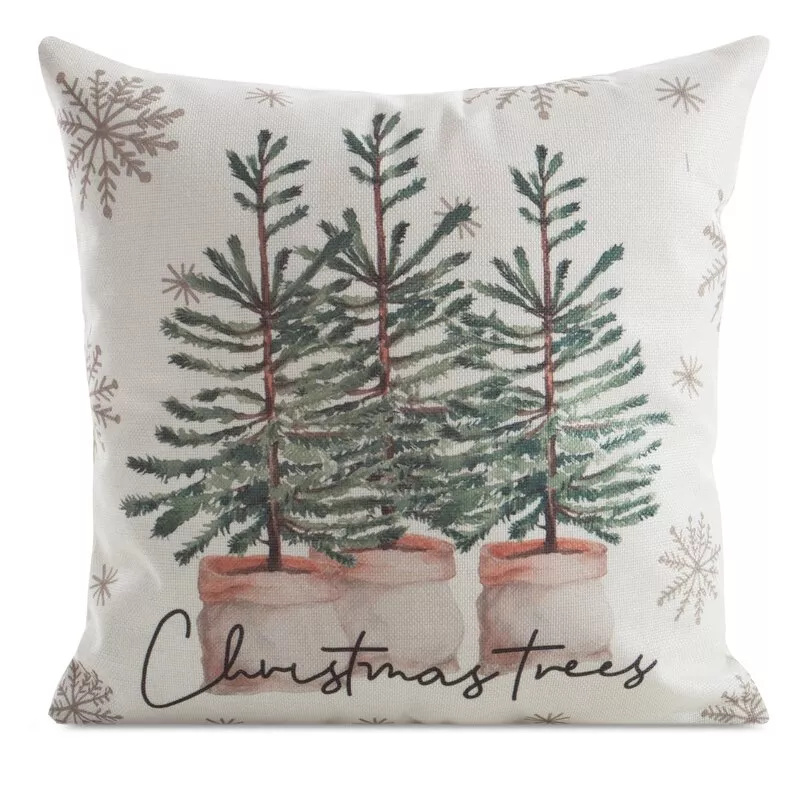 Chp 223 Eurofirany karácsonyi párnahuzat - krémszínű, zöld karácsonyfákkal, dekoratív