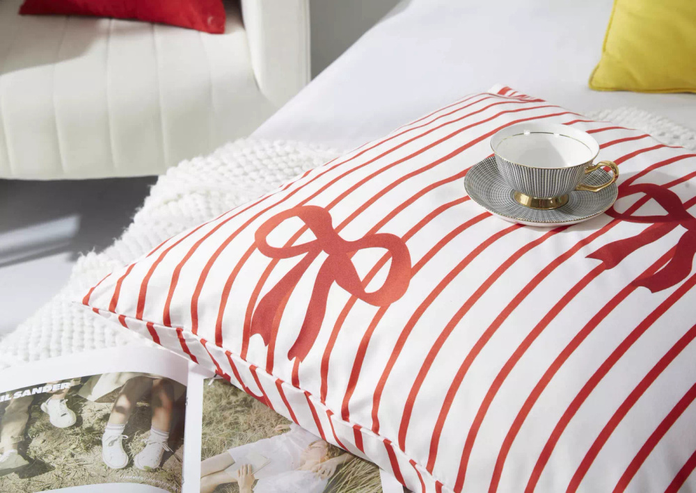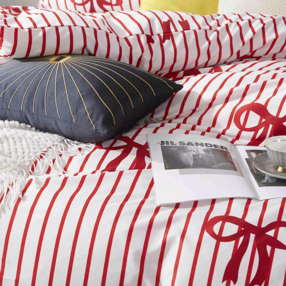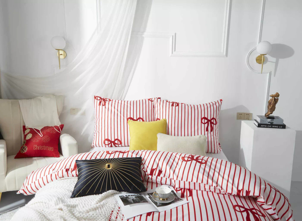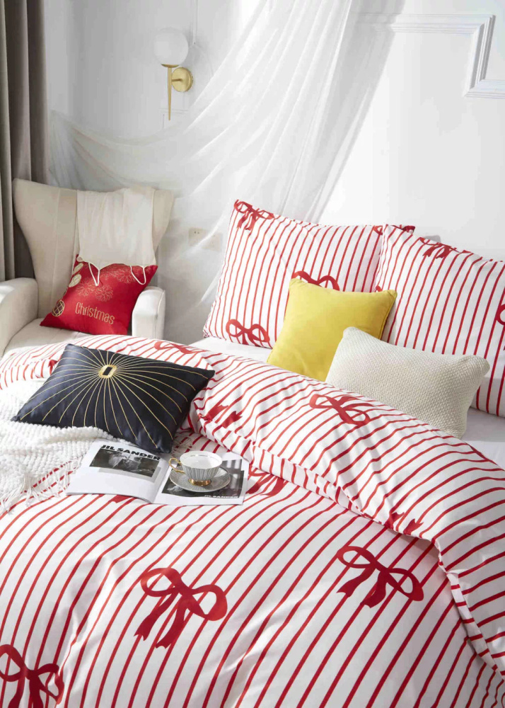 Xmass Bow karácsonyi mikroszatén ágynemű fehér piros íjak I25 Spod Igły i Nitki - puha, sima és tartós