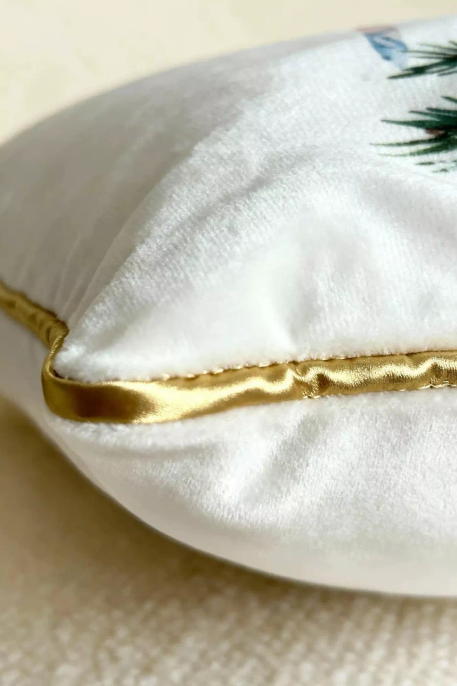 • Puha bársonyból készült dekoratív karácsonyi párnahuzat, 12 LED fénnyel díszítve. A fehér és zöld minta és a bolyhos textúra hangulatos, varázslatos légkört teremt bármely belső térben.