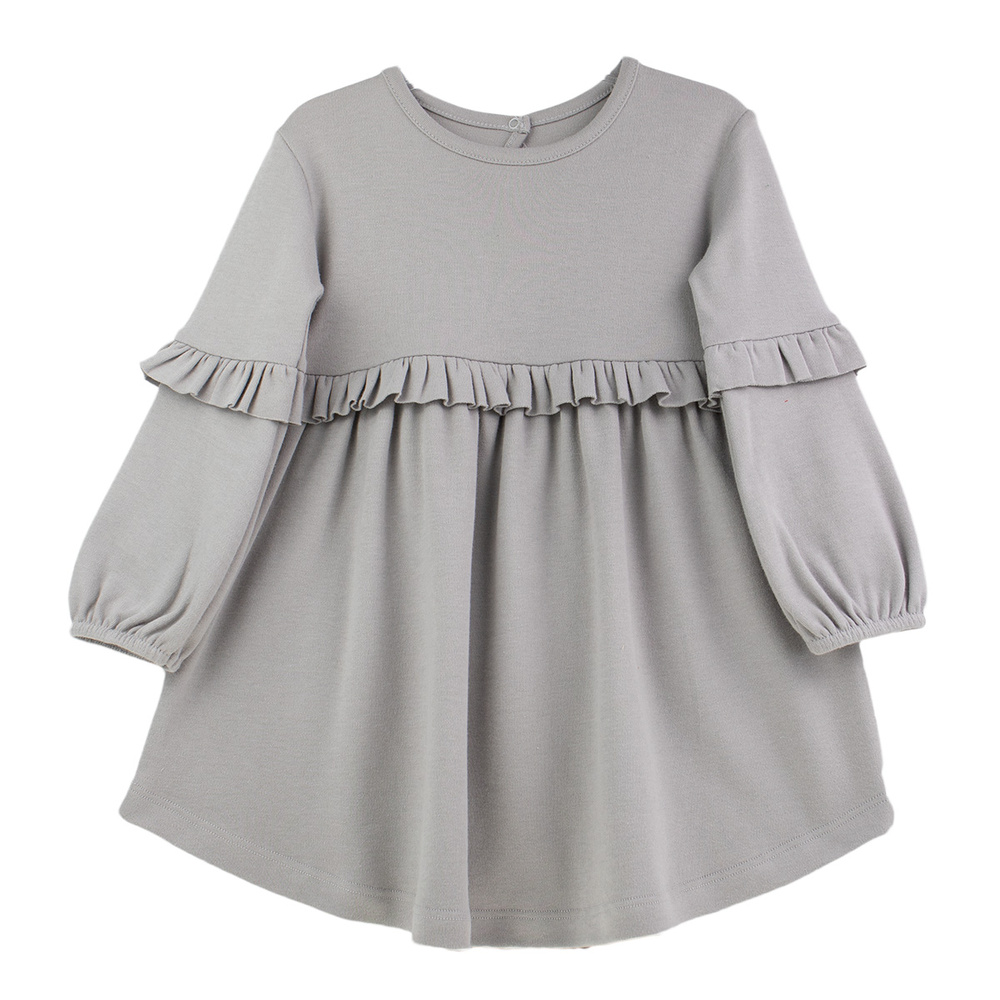 - Nicol szürke hosszú ujjú lány ruha, 100 % tanúsított pamutból készült. Fodrokkal díszített és praktikus könnycseppes záródással ellátott.