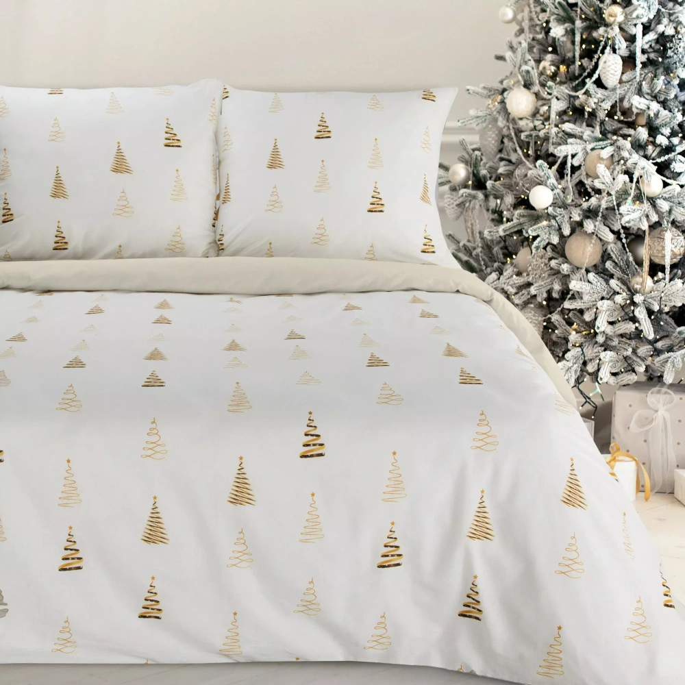A készlet kétoldalas - az egyik oldalt finom ünnepi nyomtatás díszíti, míg a másik oldal sima marad, így az ágy megjelenését a hangulatához és a belsőépítészetéhez igazíthatja.