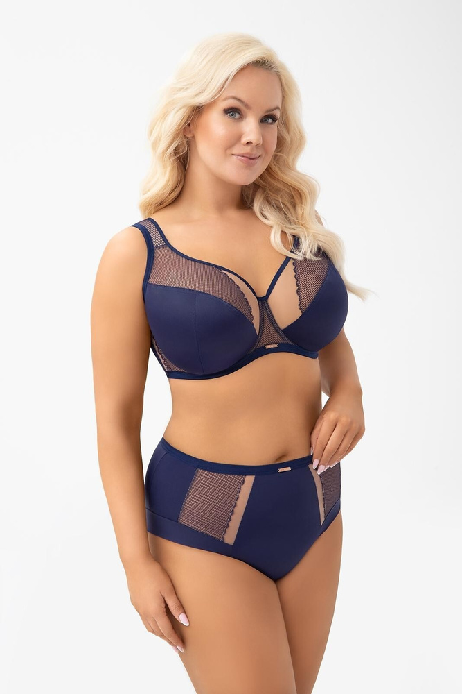 A sötétkék Luisse melltartó nagyszerűen néz ki sötét blúzok, ruhák és elegáns ingek alatt. A szettet sötétkék Gorsenia bugyival vagy tangával párosíthatja.