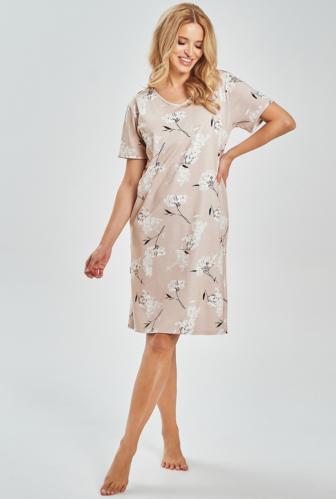 3538 Fiora Női hálóing Taro - 100% pamut, virágmintás, térdig érő | Könnyű póló nyárra