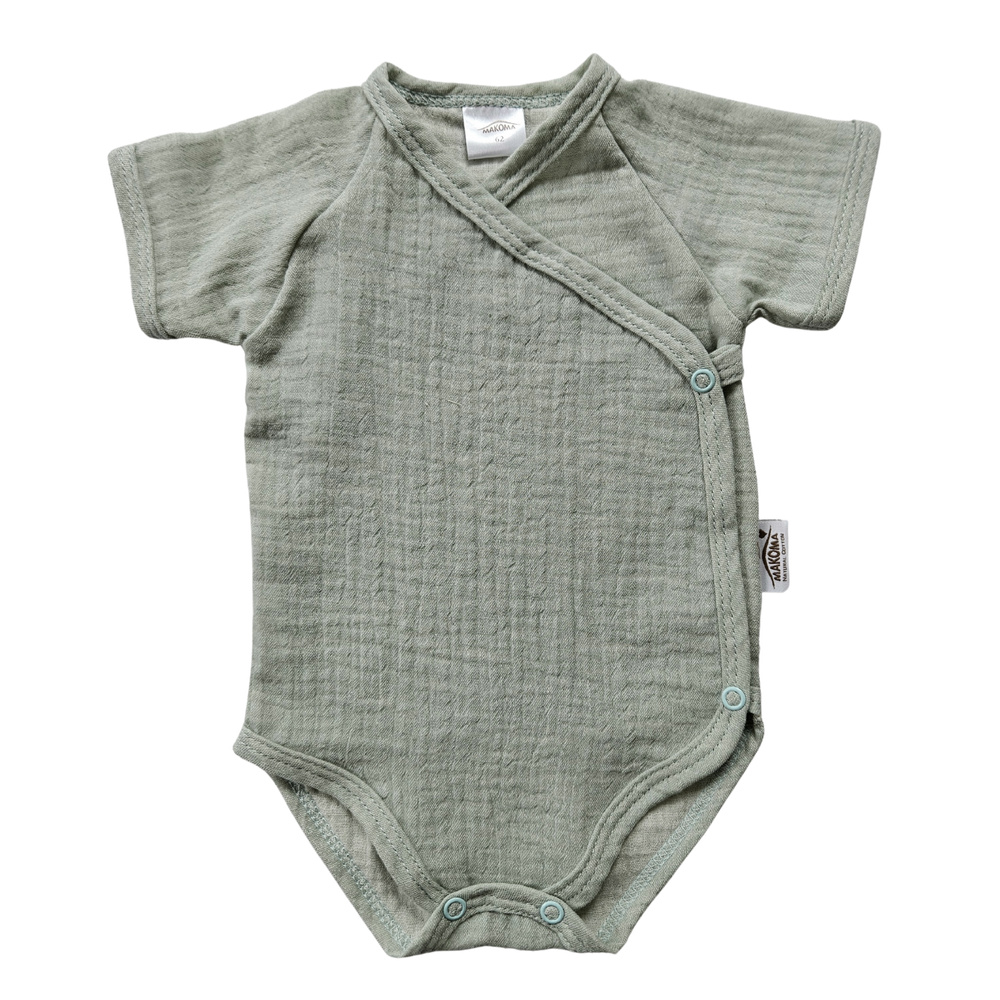 Ha keres könnyű bébibodysuit tavaszra és nyárra, amely gyengéd lesz a bőrhöz, praktikus a mindennapi használatra és kényelmes az élet első napjaitól kezdve, just Muslin Makoma muszlin bodysuit rövid ujjakkal és borítékos rögzítéssel nagyon jó választás. Ez a modell különösen ajánlott, ha természetes anyagokat és gyors, stresszmentes öltözködési módot szeretne.