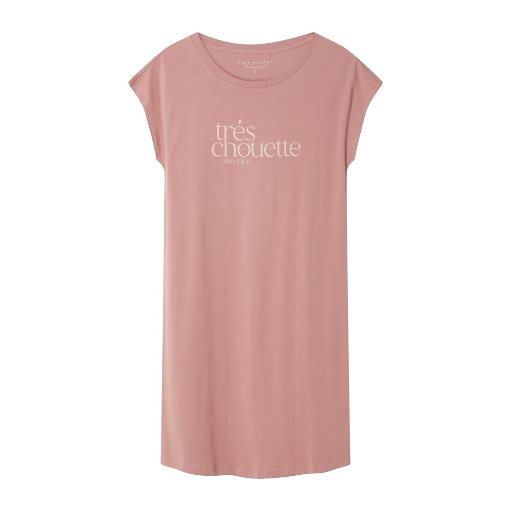 A rövid ujjak és a félköríves nyakkivágás finom eleganciát kölcsönöz, tökéletes az év bármely szakában. Ezenkívül az ing elején egy finom felirat található, amely tovább növeli egyedi jellegét. A laza szabás miatt a hálóing rendkívül kényelmes és nem szorít, így ideális alváshoz és mindennapi otthoni pihenéshez egyaránt. Térdig érő hossza biztosítja a kényelmet, anélkül, hogy aggódnia kellene a túlságosan támogató anyagok miatt.