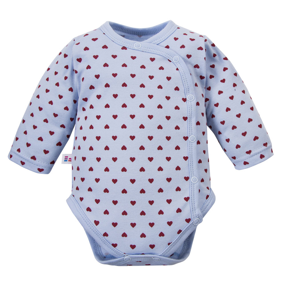 Eevi Love baba body kék szívecskékkel 100% pamut, teljesen nyitható