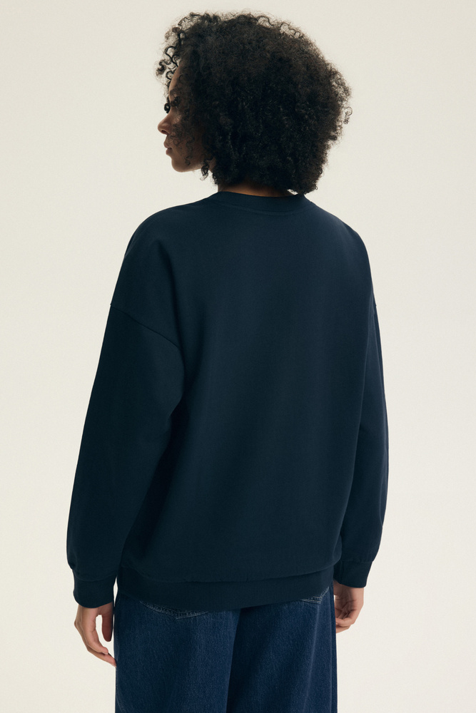 A pulóver kiváló minőségű pamutkeverékből készül (77% pamut, 23% poliészter), amely puha tapintást, jó szellőzést és formatartást biztosít. A belső, enyhén bélelt felület komfortos hőérzetet ad hűvösebb reggeleken és estéken, illetve az őszi-téli időszakban. A klasszikus szabású, hosszú ujjú fazon és a kerek nyakkivágás szabad mozgást enged, míg a rugalmas passzék a nyaknál, az ujjaknál és az alján stabil illeszkedést biztosítanak.