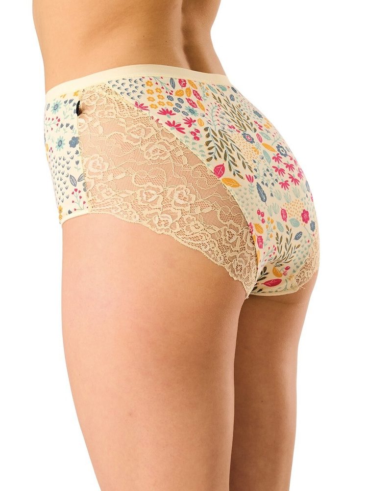 A bugyi kiváló minőségű pamutból készül, kis mennyiségű elasztán hozzáadásával. Ennek köszönhetően az anyag légáteresztő, bőrbarát és puha tapintású, ugyanakkor rugalmas, így természetesen követi a test vonalát. A hátoldalon elhelyezett csipkebetétek diszkrét, elegáns megjelenést adnak, anélkül hogy rontanák a komfortérzetet.