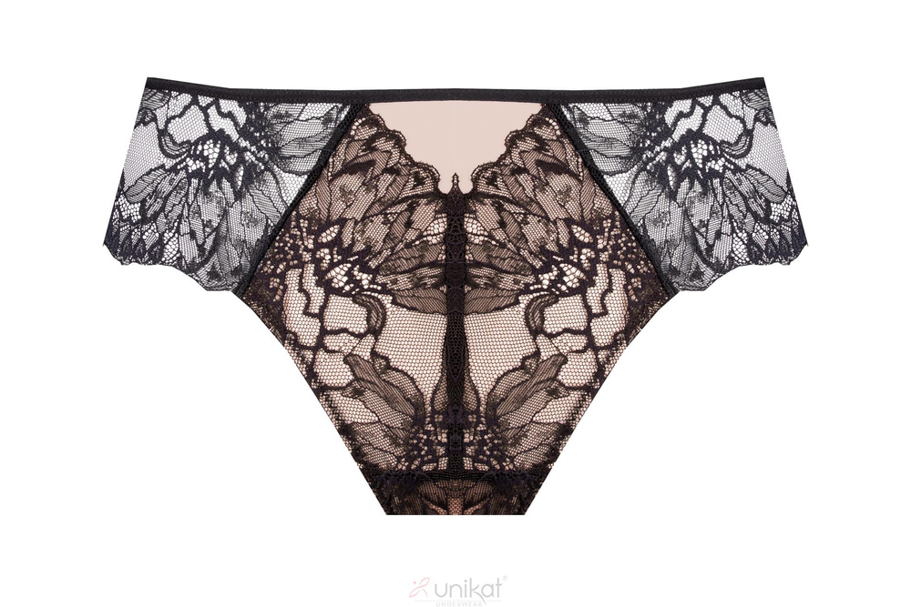 • Unikat Kiana fekete csipkés női bugyi klasszikus szabással, amely finoman kiemeli a sziluettet és kényelmet biztosít egész nap. Rugalmas, puha csipke és igényes kidolgozás. Kombinálja a Kiana melltartóval.