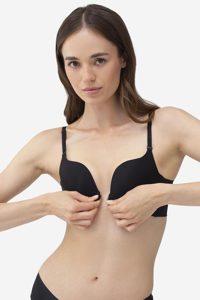 A hőformázott kosarak megemelik a mellet, és finoman középre terelik, így teltebb, kerekebb hatást hoznak létre. A mélyen kivágott középrész ideálissá teszi ruhákhoz és felsőkhöz, amelyek hangsúlyos dekoltázzsal készültek. A push-up kialakítás látható, mégis természetes hatású volumenfokozást biztosít.