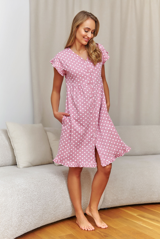 A Doctor Nap 7303 hálóing tökéletes választás a leendő anyukák és a szoptatós anyukák számára. Kellemes tapintású kötött anyagból (95% pamut, 5% elasztán) készült a rugalmasság és a változó sziluetthez alkalmazkodó szabás érdekében. Borítékolt nyakkivágás a gyors és kényelmes hozzáférésért a mellekhez etetés közben. A rövid ujjak és a nőies szegélyek lágy, elegáns megjelenést kölcsönöznek a teljes megjelenésnek. A lengyel gyártás a minőség és a részletekre való odafigyelés garanciája.