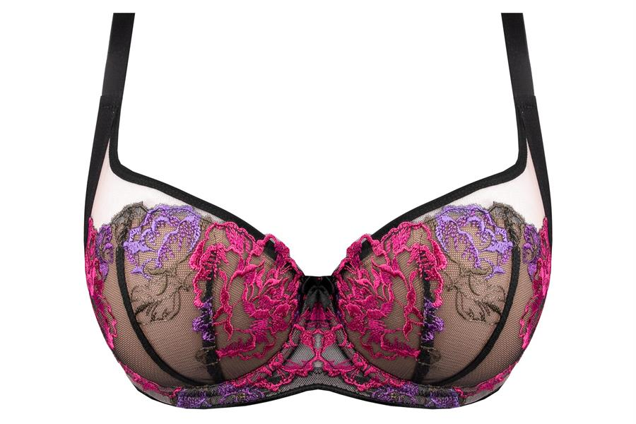 A teljes kosaras (full cup) kialakítású, merevített kosarak teljes fedést biztosítanak, egyenletesen oszlatják el a mell súlyát, és természetesen kerek formát alakítanak ki push-up hatás nélkül. A stabil alsópánt segít a megfelelő alátámasztásban, tehermentesíti a vállakat, miközben a formázott középrész hozzájárul a biztos illeszkedéshez. Az állítható vállpántok lehetővé teszik az egyéni beállítást.