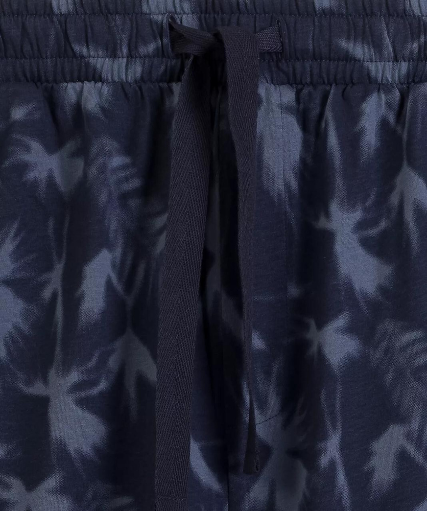 Az alsó rész laza szabású rövidnadrág pálmamintával, amely könnyed nyári hangulatot kölcsönöz a szettnek. A derékrészen pamutborítású rugalmas gumis derék és állítható húzózsinór található, így könnyen a testalkathoz igazítható. A praktikus oldalzsebek növelik a kényelmet a mindennapi használat során.