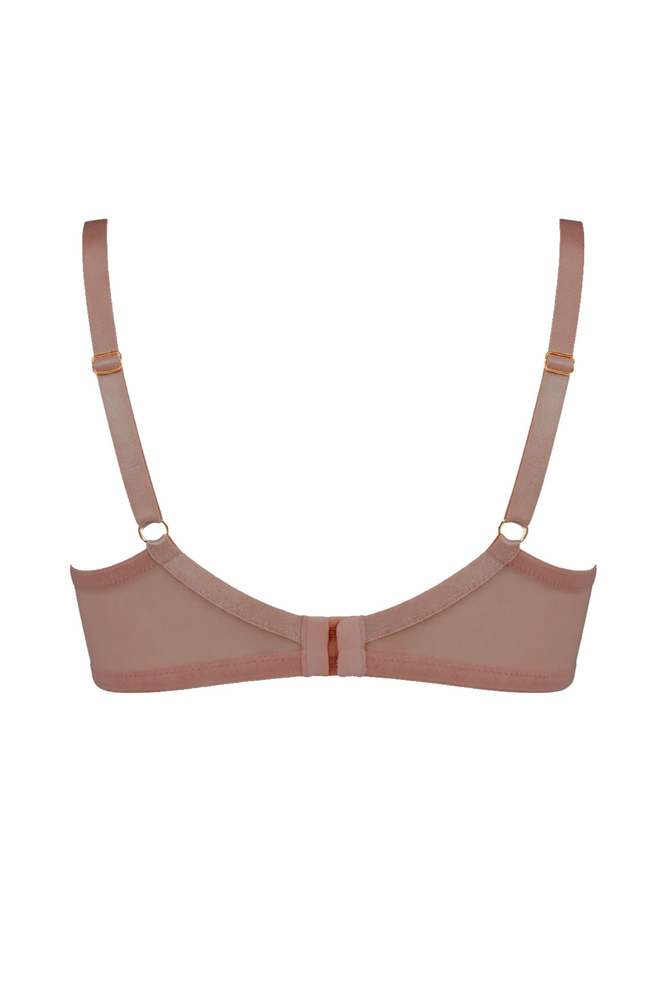 A sima, gondosan kialakított kosarak oldalról összegyűjtik a mellet és középre terelik, így teltebb, harmonikus formát hoznak létre. A felső rész áttetsző betétei könnyedséget adnak, miközben finoman kiemelik a dekoltázst. Ennek köszönhetően a melltartó elegáns, mégis visszafogott, így mindennapi viseletre és alkalmi öltözékekhez is megfelelő.