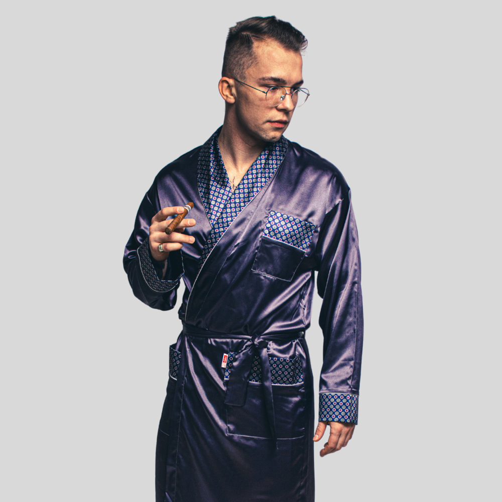 940 Forex férfi szatén fürdőköpeny - tengerészkék