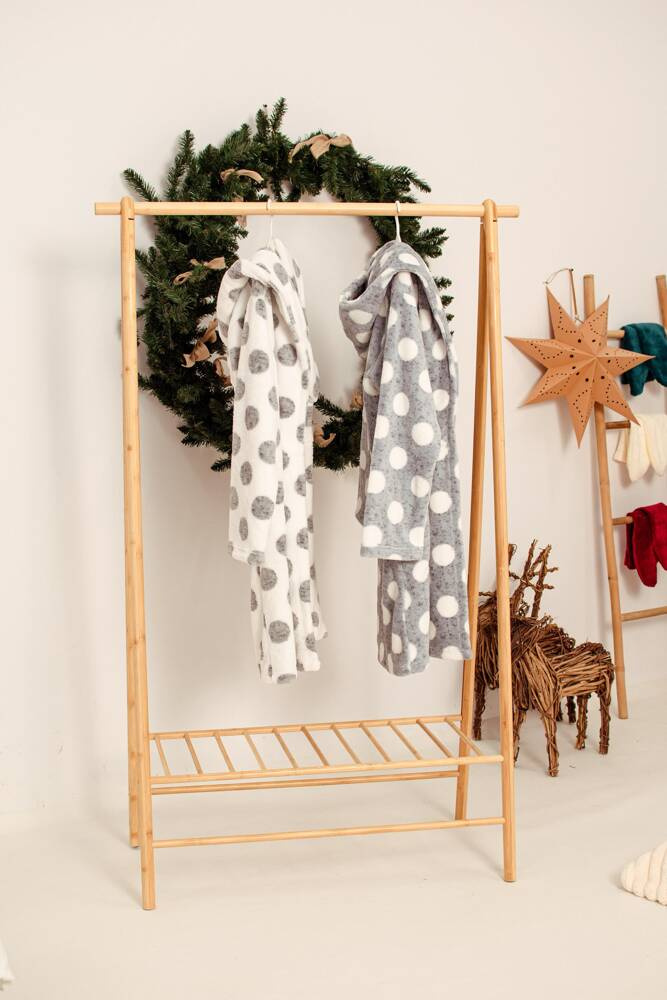 Női rövid köpeny kapucnival, puha, puha kötött anyagból, nagy pöttyökkel. Derékban megkötve, zsebekkel. Ennek a modellnek a fő előnye a meleg és kellemes tapintású plüss anyag. KIVÁLÓ MINŐSÉGŰ, NAGYON JÓ VÍZFELVÉTELŰ TERMÉK !!!