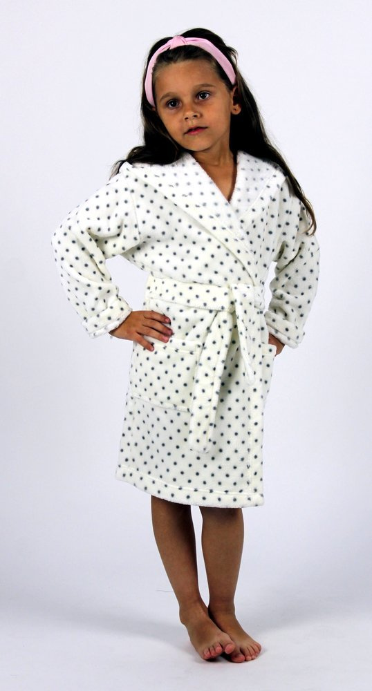 FOREX gyermek fürdőköpeny egyenes szabásban, kapucnival. Térdig érő, oldalsó zsebekkel, derékszíjjal és öv megkötővel. Minden borsóban. A fürdőköpeny tökéletesen alkalmazkodik a test alakjához, rendkívül puha és könnyű, puha kötött anyagból készült. Fürdés után öröm beleburkolózni!