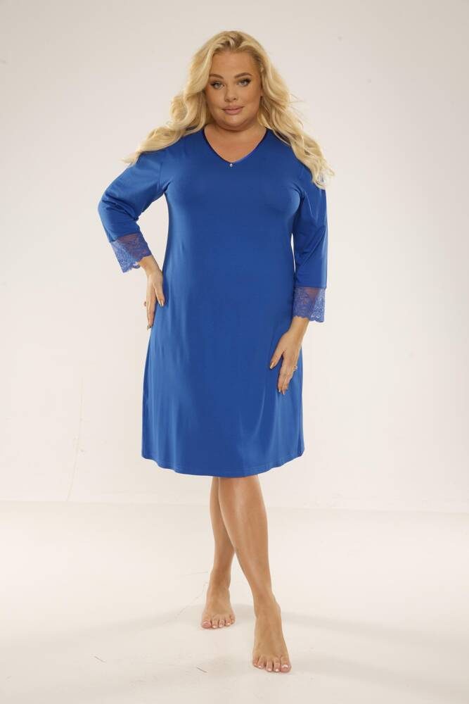 Női ing, kiváló minőségű viszkózból, 7/8-os ujjakkal. V-alakú nyakkivágás és hátrész, széles, virágmintás csipkével díszített mandzsetták. Térdig érő.