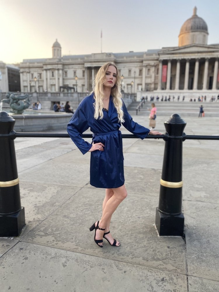 Egyszerű, rövid szatén fürdőköpeny lenyűgöz eleganciájával és szinte sokoldalú felhasználásával.