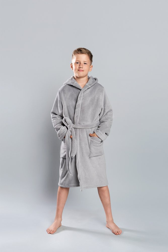 - Fiú fürdőköpeny derékban megkötve kapucnivalOlasz divat A készlet kiegészítéséhez egy férfi fürdőköpeny Mimas is megvásárolható.