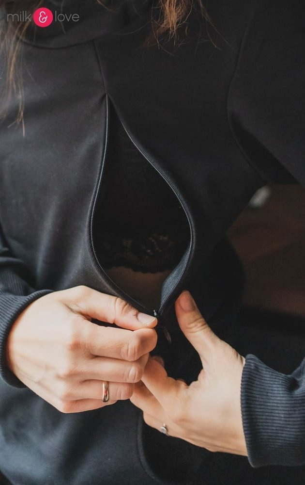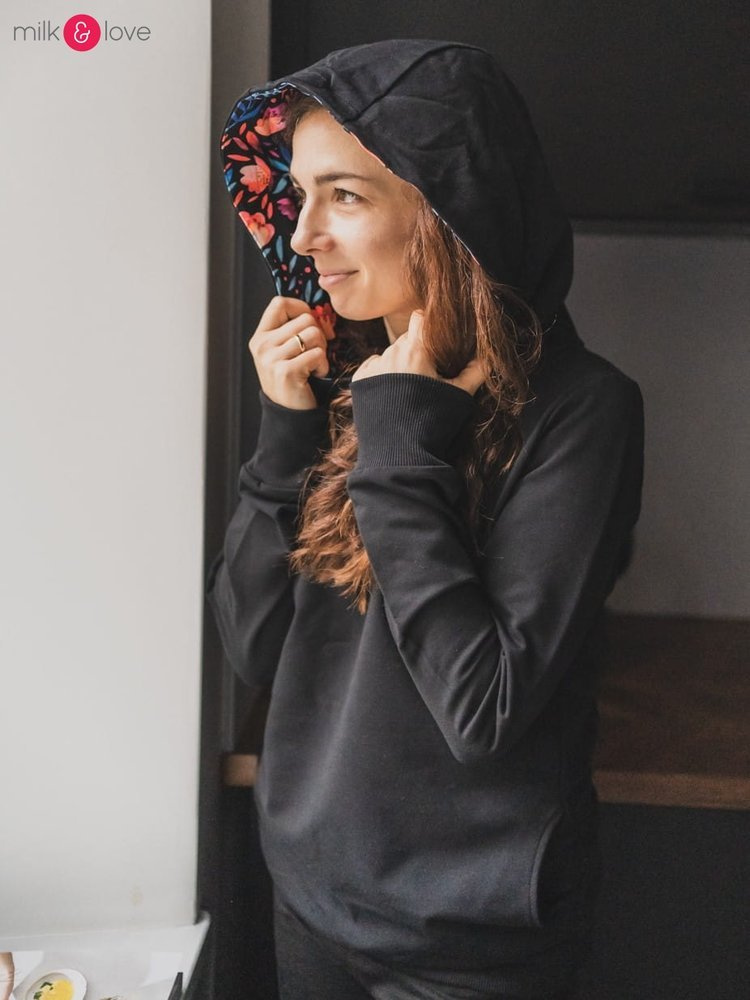 Milk Please bluza do karmienia Milk&Love z kapturem czarny