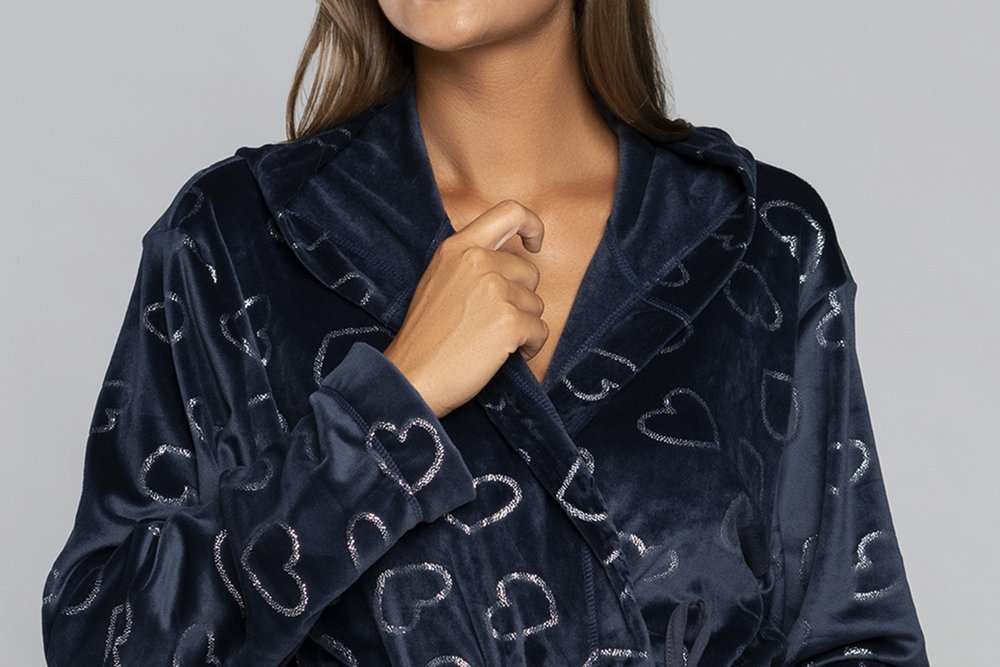 Az Elixir női köntös megfelel ezeknek az elvárásoknak. Már az érintés is arra késztet, hogy belesüllyedjünk. Hihetetlenül puha és finom Bi fleece kötésből készült, klasszikus mély, tengerészkék és gyönyörű lédús piros árnyalatban, ezüst csillogó szívekkel díszítve.