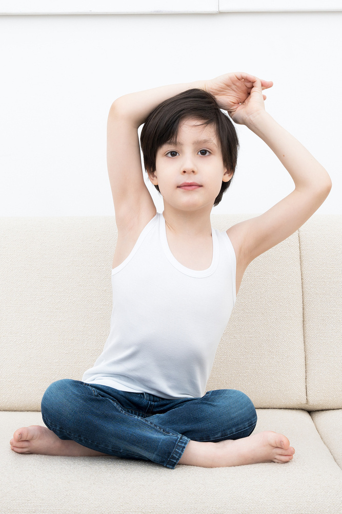 Nagyon kényelmes póló, kerek nyakkivágással, amelyet a kisgyermekek kényelmét szem előtt tartva hoztak létre.