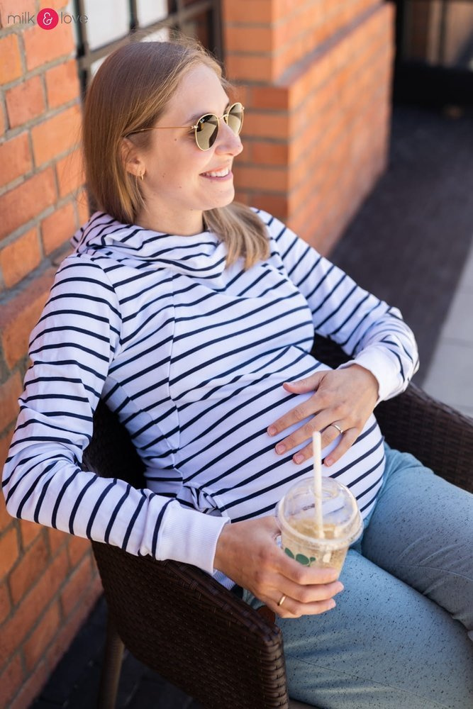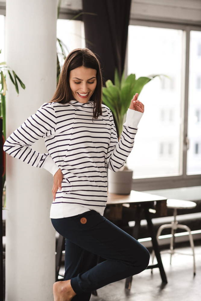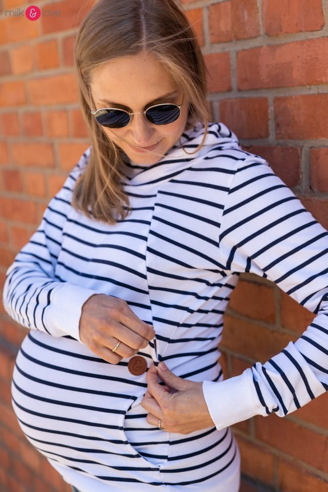 Milk Please bluza do karmienia Milk&Love z kapturem w granatowo-białe paski