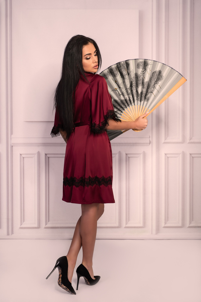• gyönyörű bordó szatén fürdőköpeny