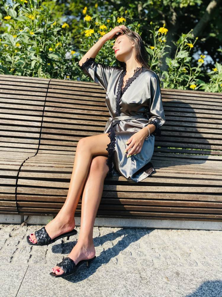 Ez a modell rendelkezik a tökéletes alsószoknya minden tulajdonságával - szexi, jó minőségű anyagból készült, és a szabása tökéletesen kiemeli bármelyik sziluettet. Ha szereti az érzéki köntösöket, amelyek lágyan körbeölelik a testét, és a hűvös szatén érintése a felhevült bőrén luxusérzetet kelt - akkor a mi köntösünket kell választania. Az eleje és a széles ujjak kiváló minőségű csipkével díszítettek, hogy egyedi hatást keltsenek. Garantáljuk, hogy nagyon nőiesnek és érzékinek fogja érezni magát benne. A köntöshöz egy szatén öv van hozzáadva, hogy megfelelően beállíthassa és kiegyenlítse az arányokat.