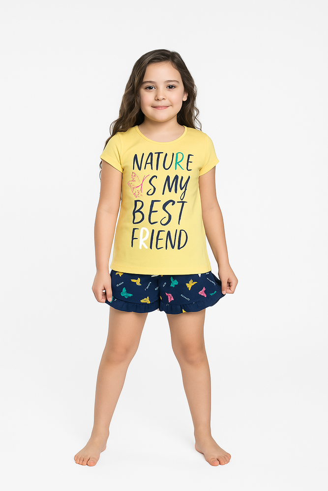 Kényelmes és aranyos pizsamát keres egy lánynak? Mariposa az Italian Fashiontől a tökéletes választás! Puha, lélegző pamutból készült, energikus sárga és tengerészgyalogos színkombinációban, amely minden este kényelmet és elegáns megjelenést biztosít.