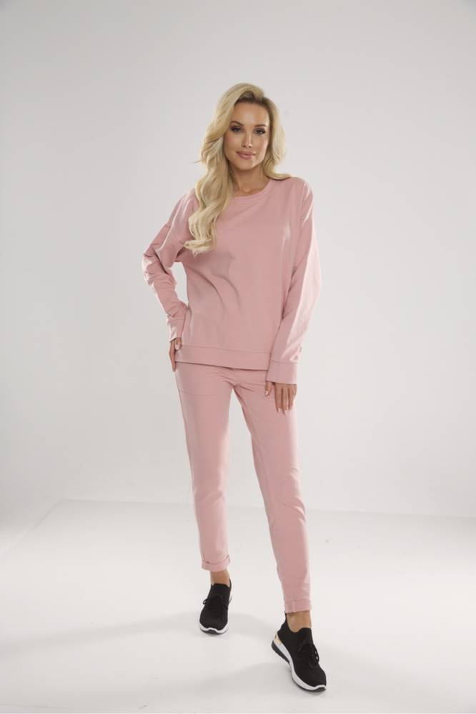 Kényelmes női tréningruha testbarát anyagból. Hosszú ujjú, laza szabású pulóver .
